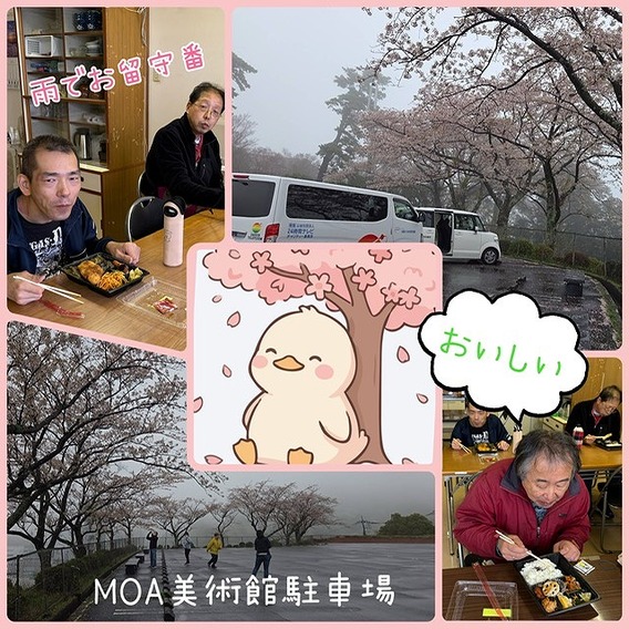 雨で、参加が厳しい利用者さんとは施設にてお弁当を食べさせていただきました。